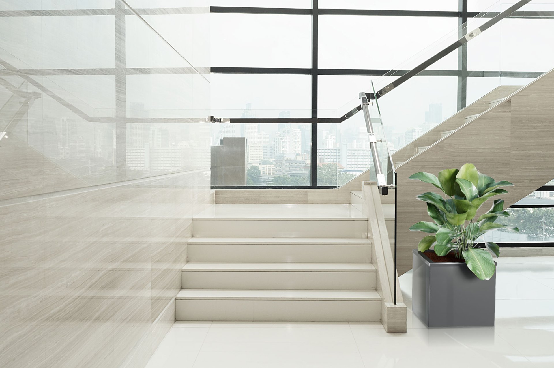Velkoobjemový samozavlažovací květináč s bezúdržbovou povrchovou úpravou zajišťující stálobarevnost a odolnost vůči UV záření.