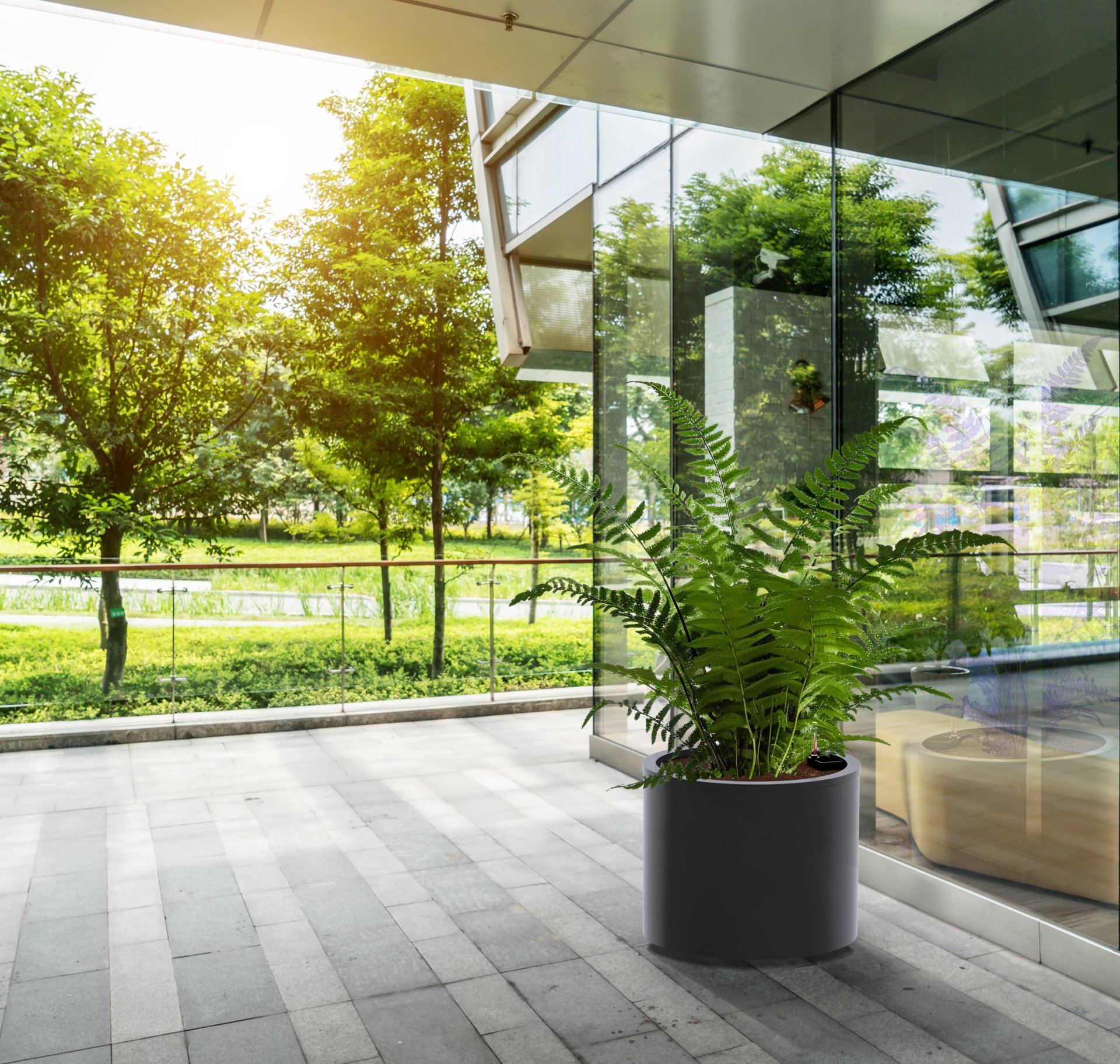 Velkoobjemový samozavlažovací květináč s bezúdržbovou povrchovou úpravou zajišťující stálobarevnost a odolnost vůči UV záření.