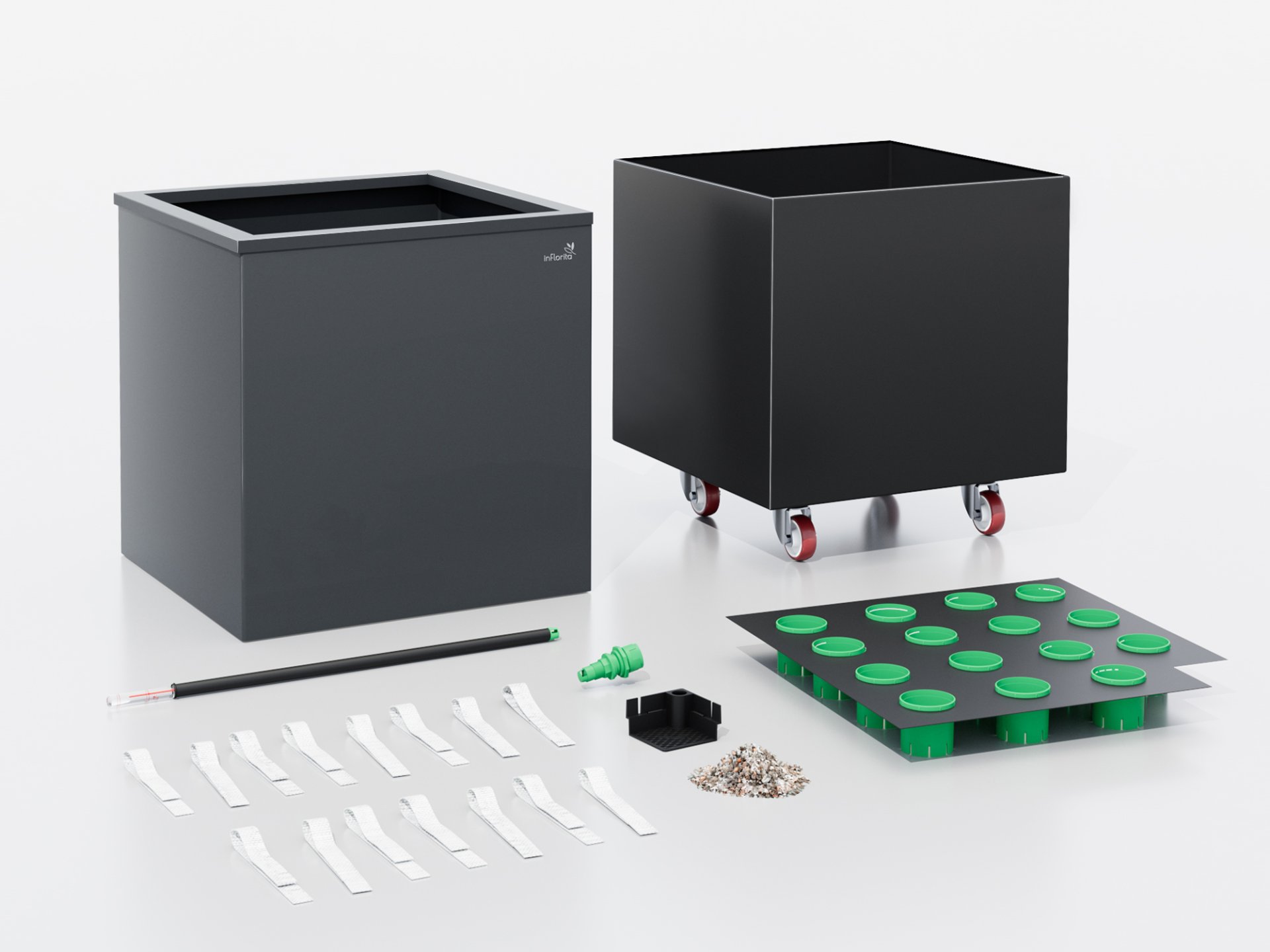 Květináč spojuje dvě základní funkce pro zdravý růst rostlin – velký objem a samozavlažovací funkci. Objem pro substrát lze upravit dle velikosti rostliny – dvě úrovně dna. Samozavlažovací funkce každého květináče je doplněna o důmyslný odtok přebytečné vody v exteriéru.