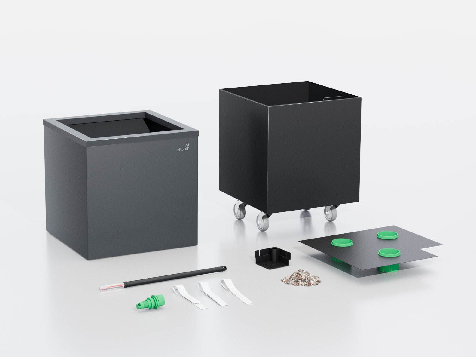 Květináč spojuje dvě základní funkce pro zdravý růst rostlin – velký objem a samozavlažovací funkci. Objem pro substrát lze upravit dle velikosti rostliny – dvě úrovně dna. Samozavlažovací funkce každého květináče je doplněna o důmyslný odtok přebytečné vody v exteriéru.
