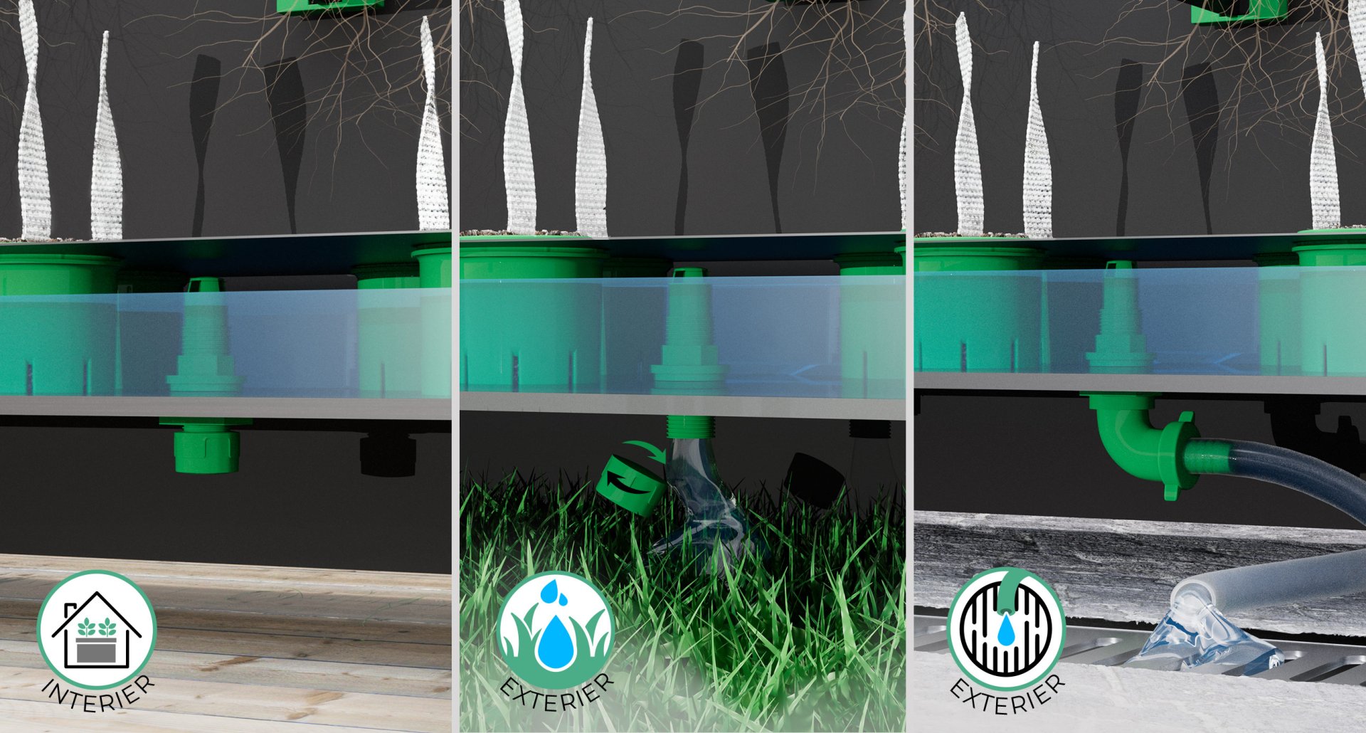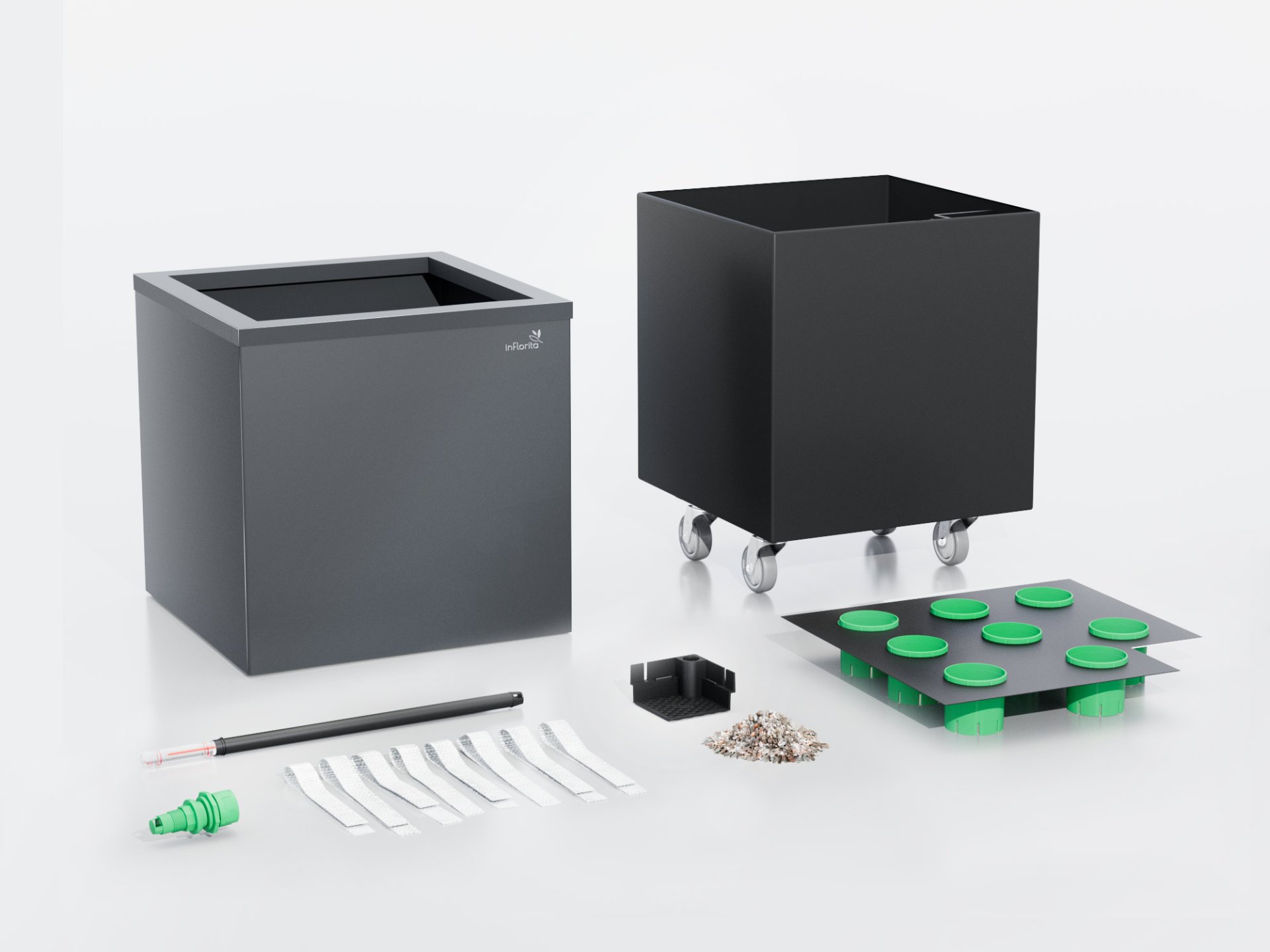 Květináč spojuje dvě základní funkce pro zdravý růst rostlin – velký objem a samozavlažovací funkci. Objem pro substrát lze upravit dle velikosti rostliny – dvě úrovně dna. Samozavlažovací funkce každého květináče je doplněna o důmyslný odtok přebytečné vody v exteriéru.