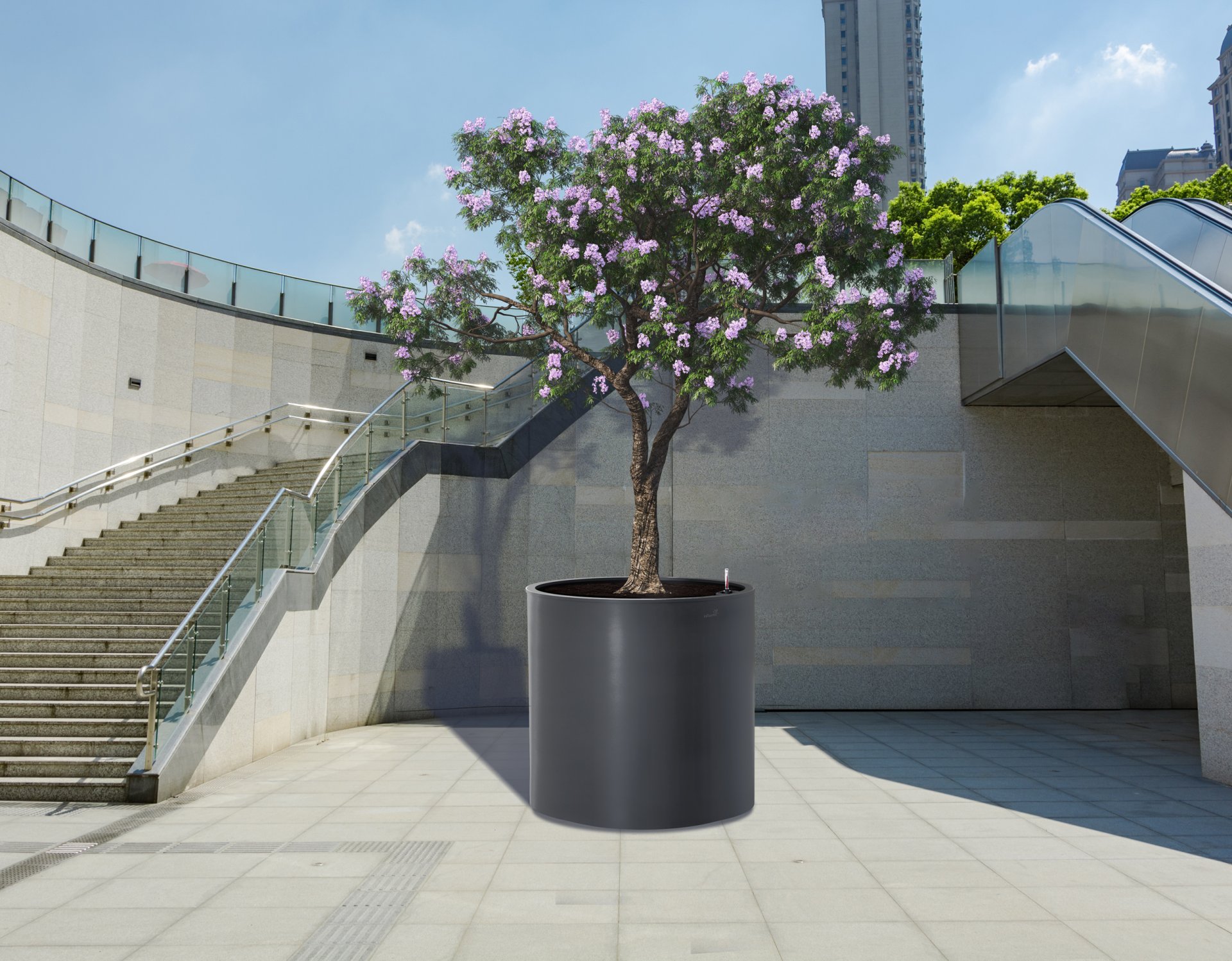 Velkoobjemový samozavlažovací květináč s bezúdržbovou povrchovou úpravou zajišťující stálobarevnost a odolnost vůči UV záření.