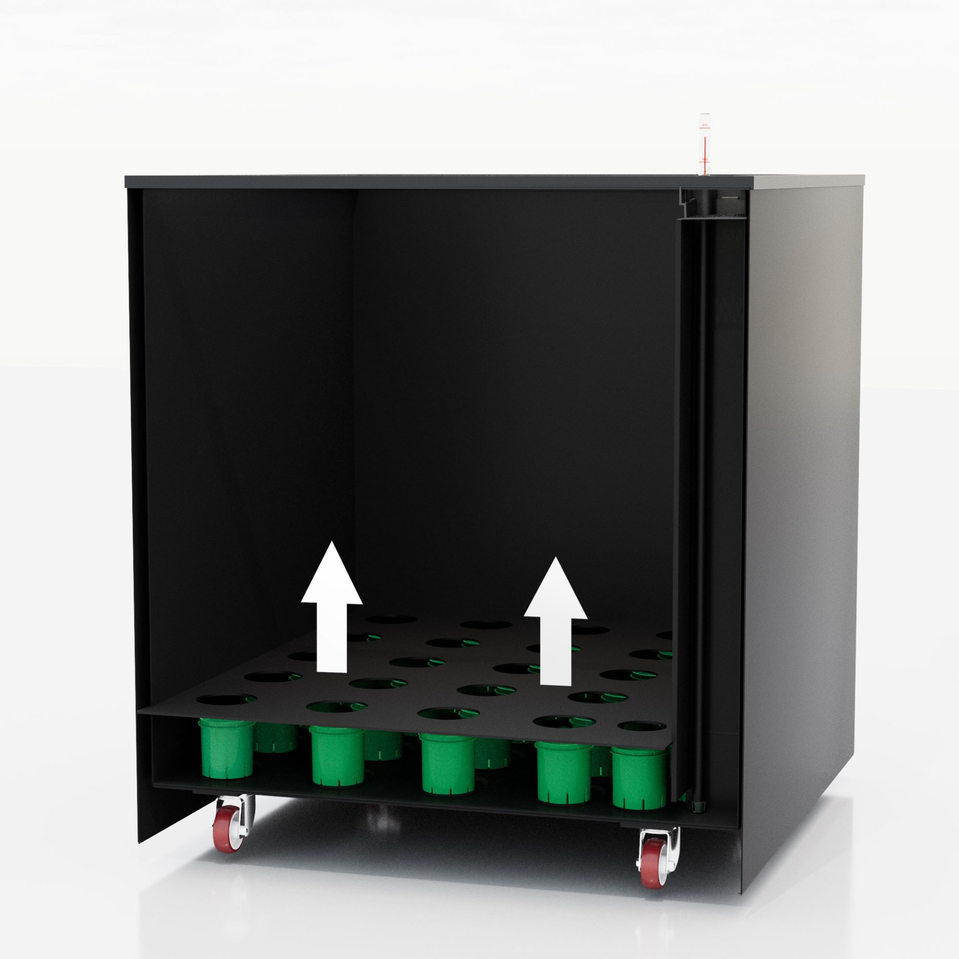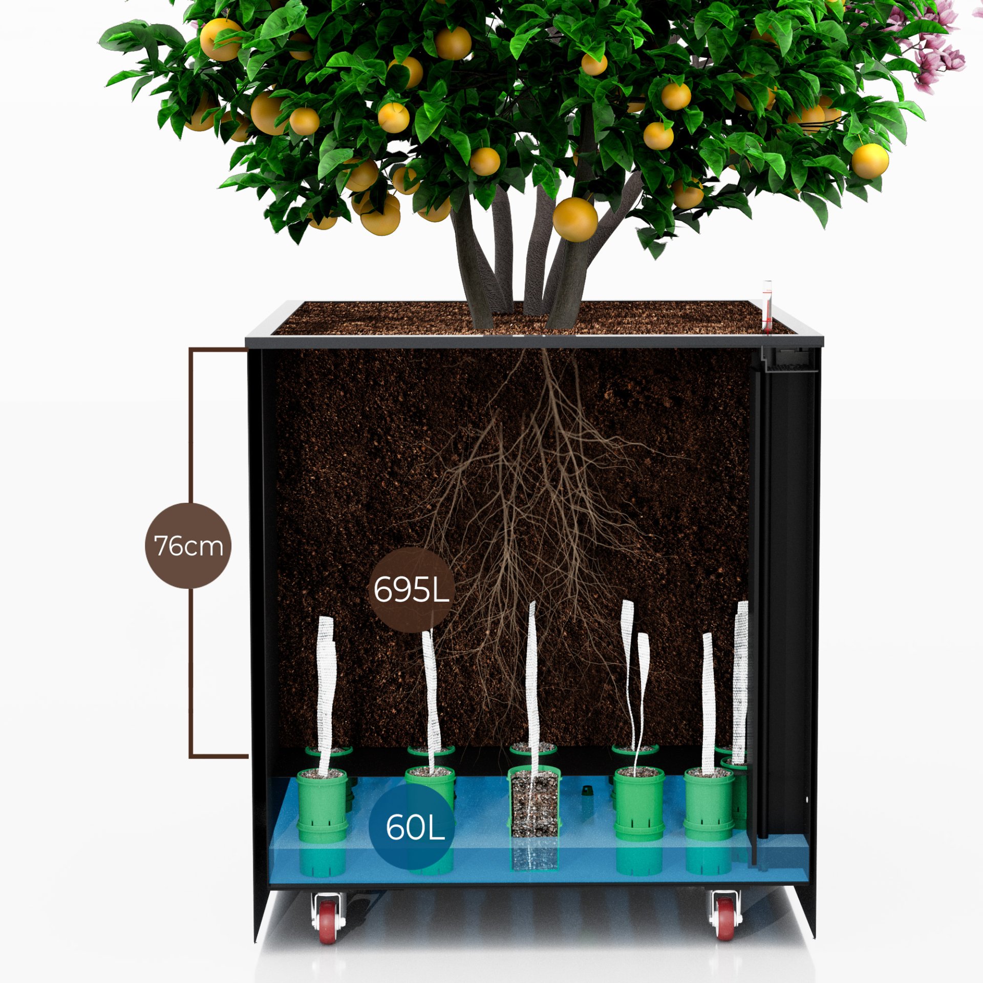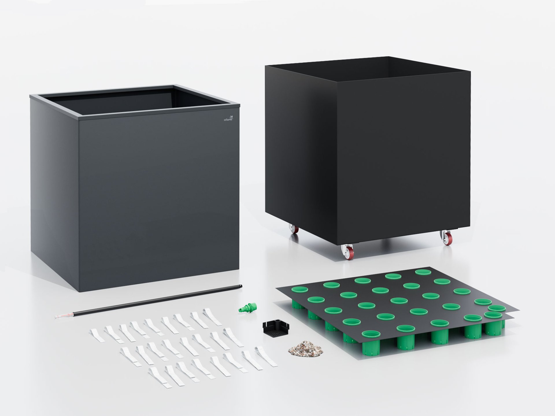Květináč spojuje dvě základní funkce pro zdravý růst rostlin – velký objem a samozavlažovací funkci. Objem pro substrát lze upravit dle velikosti rostliny – dvě úrovně dna. Samozavlažovací funkce každého květináče je doplněna o důmyslný odtok přebytečné vody v exteriéru.
